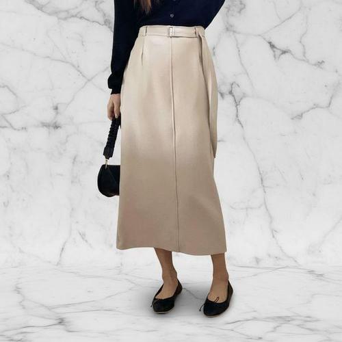 [신상오픈런]여성 사무실 패션 데일리 하객 스타일 벨트 미디 스커트