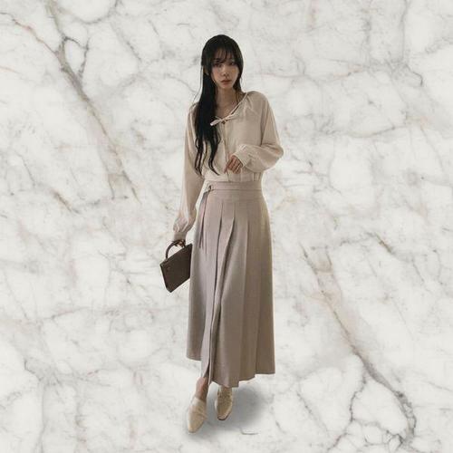 [신상오픈런]여성 플리츠 벨트 롱 스커트 하객 패션