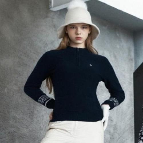 [레노마골프]레노마골프 여성 겨울 소매 자가드 방풍 반집업 니트 N8211