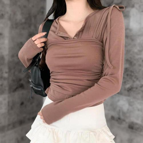 [옷자락]여성 기모 레이온 신축성 셔링 뷔스티에 탑 가디건 세트