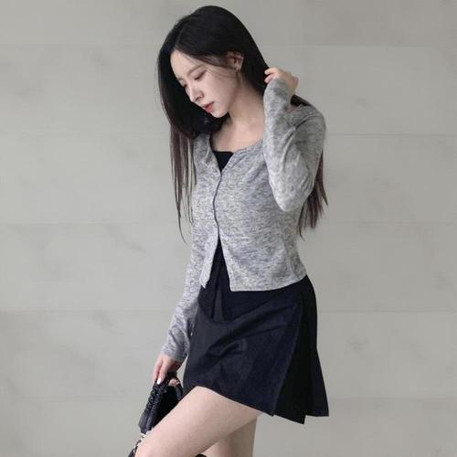 [신상오픈런]여자 심플 레이온 골지 초커 스트랩 크롭 가디건
