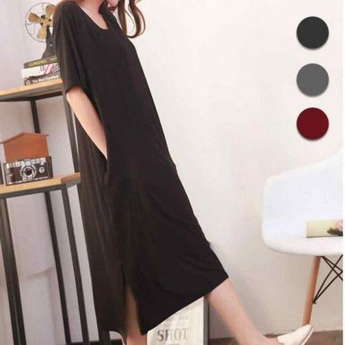 에르디테 / 레터링 홈웨어 빅사이즈 반팔 롱 원피스 스판 레이온