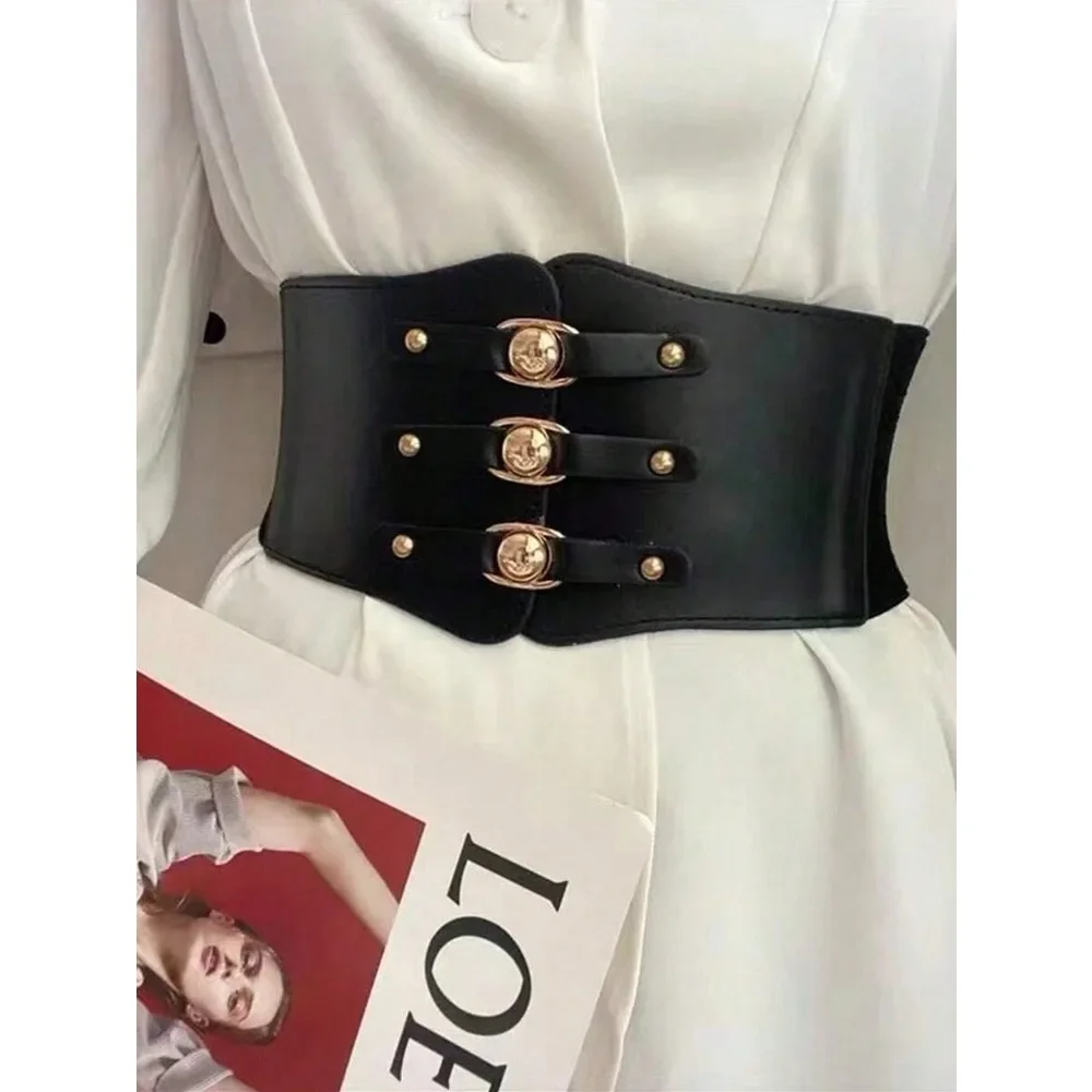 12cm 와이드 탄성 가죽 허리띠 프랑스어 레트로 허리 벨트 드레스 셔츠 자켓 장식 액세서리