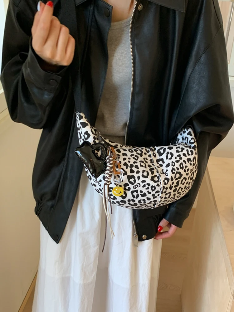 한국 스타일 레오파드 프린트 천 가방 여성 패션 싱글 숄더 크로스바디 가벼운 출퇴근 가방 2025 가을 신상품