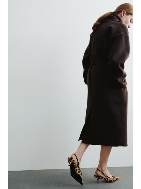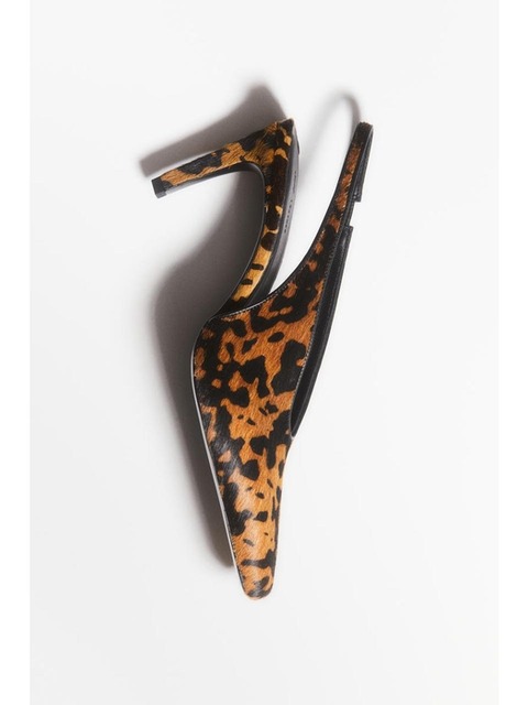 [에이치엔엠] 힐 레더 슬링백 슈즈 브라운/이미테이션 레오파드 1296730003