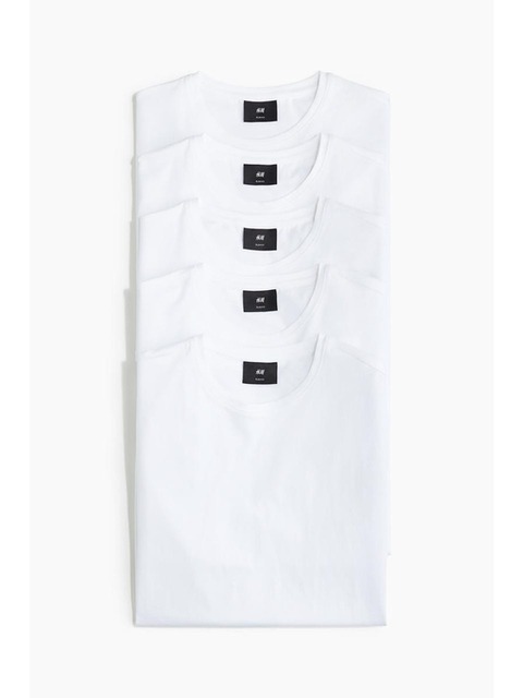 [에이치엔엠] 슬림핏 티셔츠 5피스 세트 화이트 0624684001