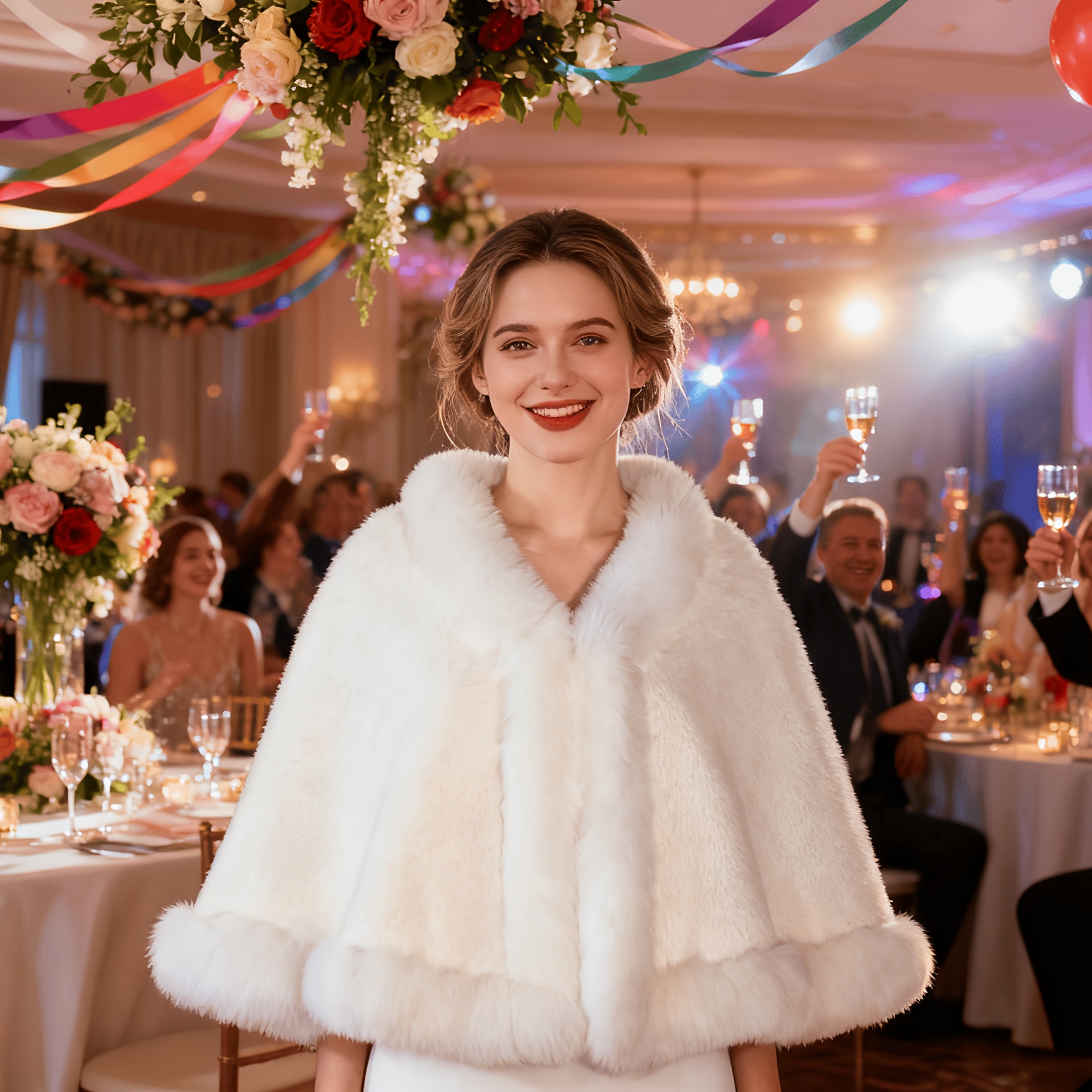 TEMU 우아한 인조 숄 1개 - 여성용 순수한 따뜻한 숄 - 크리스마스, 결혼식, 파티용 - 캐주얼 스타일, 방풍 및 방설