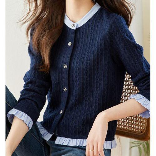 해피유통여성 봄가을 레이스 밑단 니트 가디건 귀여운 패셔너블 디자인 XG20