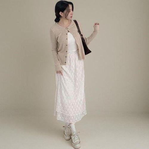 레이스 캉캉 밴딩 여른 롱스커트 스커트 WFLX6J8