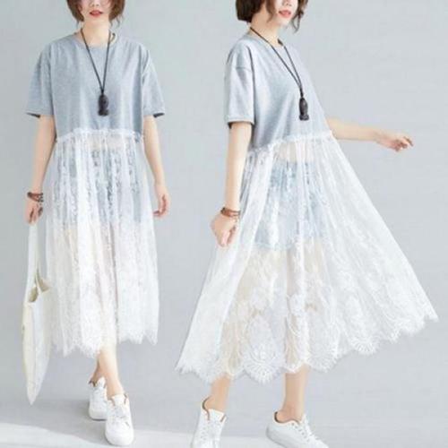 이쁘다요 썸머 롱 레이스 코디 스커트 원피스 반팔 WFLMN7U