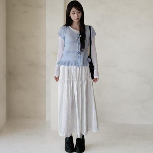 [옷자락]여성용 봄여름 시원한 면 프릴 롱스커트