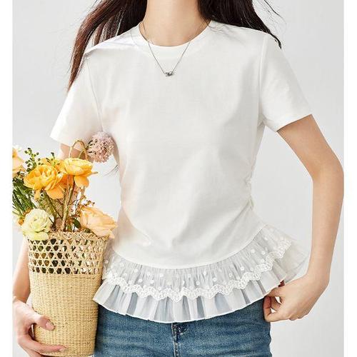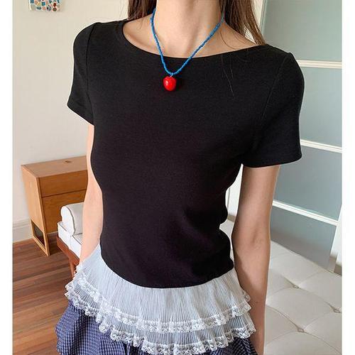 [패션시그널]허리라인스트링 레이스밑단 반팔티셔츠 8E5F68