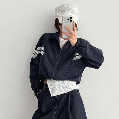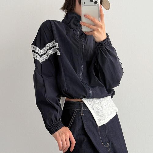 [신상오픈런]여성 레이스 크롭 스트링 바람막이 스포티 점퍼