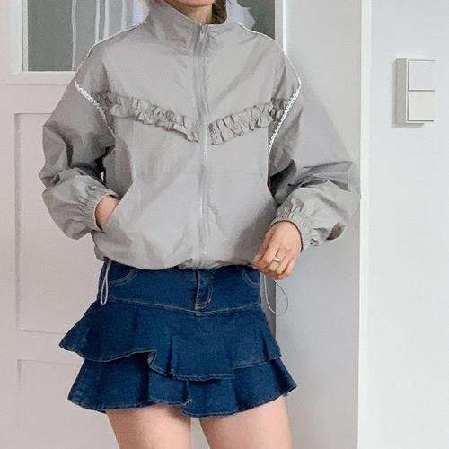 |CSJ6C97|여성용 러블리 프릴 레이스 바람막이 봄 점퍼 집업