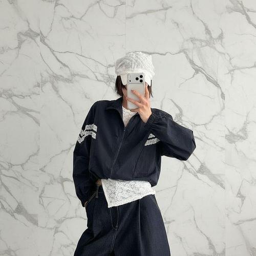 [마쟈] 이중 레이어드 레이스 블루종 집업 점퍼