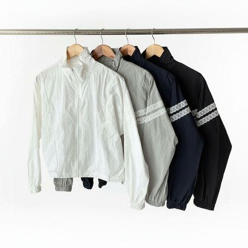 [다잇템] 여자 나일론 레이스 드로우코드 스포티 탱크 윈드브레이커 점퍼