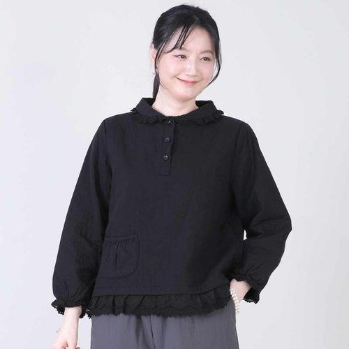 [애비뉴투지]엄마옷 레이스 카라 솜 누빔 패딩 여성 겨울 단추 오픈 긴팔 블라우스 B01611