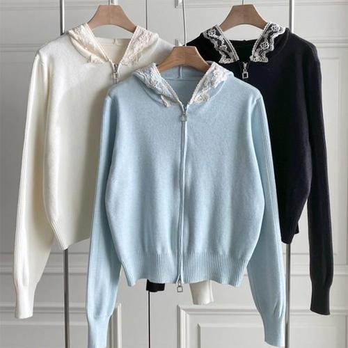 [신상오픈런]투웨이집업 크림색 여성 레이스후드 니트점퍼