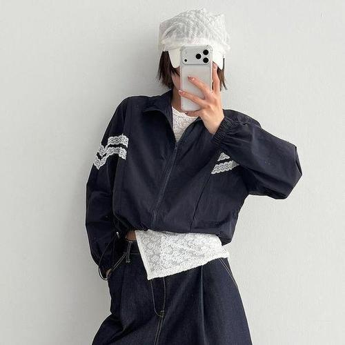 [셀러허브_여성트랜드패션]여자 레이스 크롭 스트링 바람막이 바스락 점퍼