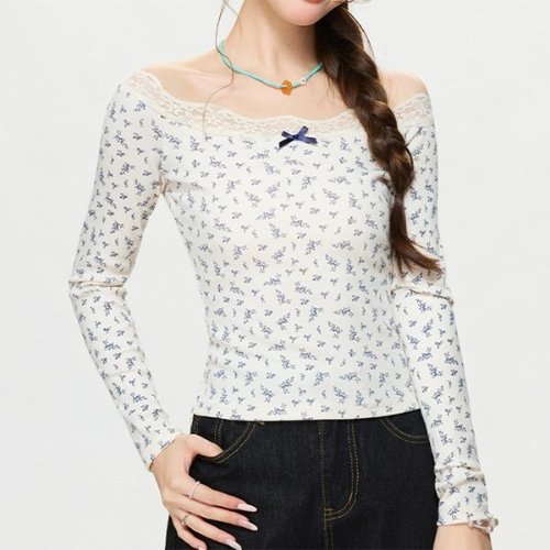 여자 레이스 프릴 티셔츠 긴팔