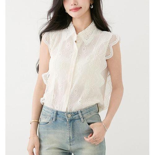 [패션시그널]펀칭레이스패턴 민소매 블라우스 334F8B