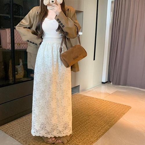 [여신룩/1col] 카일리 펀칭 레이스 맥시 롱 밴딩 스커트