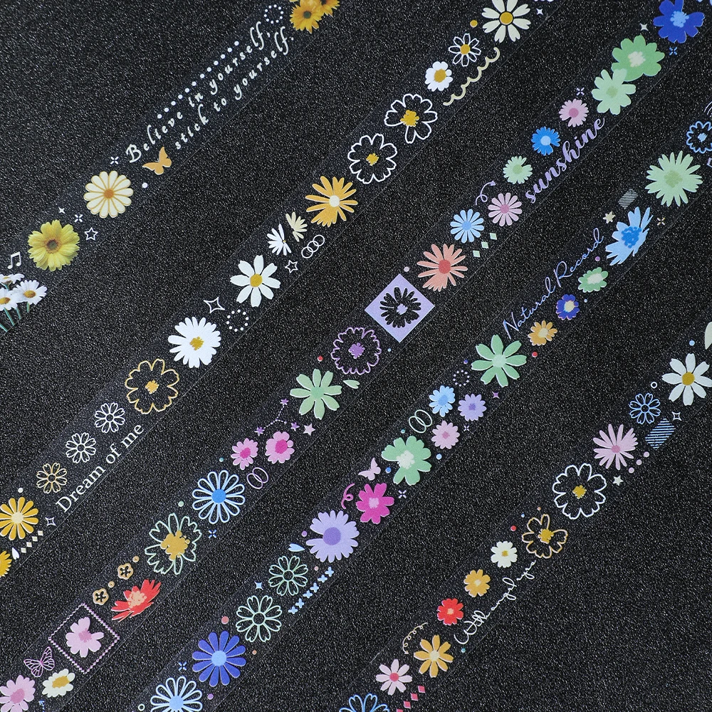 10 롤 데이지 PET 마스킹 테이프 세트 예술용 DIY 저널 플래너 스크랩북킹 공예용 자가 접착 장식 테이프