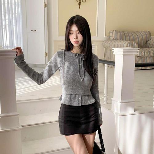 [옷자락] 여성 페미닌 데이트룩 리본넥 뷔스티에 가디건 세트
