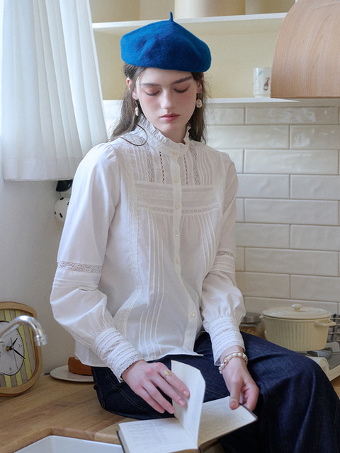 [옷자락]여자 카라 망토 레이스 스탠드 꽃무늬 셔츠