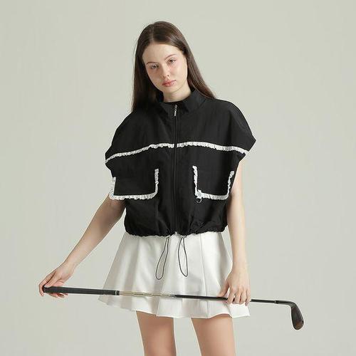씨유언니 여성 데일리라운드 레이스 조끼 쇼트 베스트 아우터 민소매 자켓 코트 오피스룩 봄여름 여성복