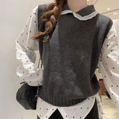 [랄라모션]레이스 카라 니트조끼(llm0509)