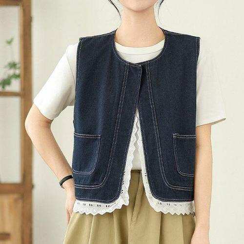 [랄라모션]레이스 오픈 데님조끼(llm0692)