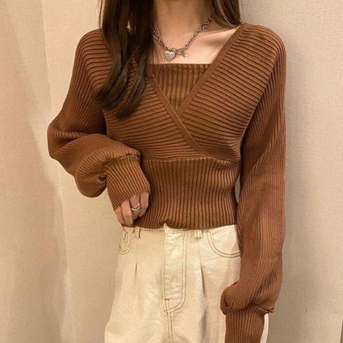 [에이치플러스몰]여성 일체형 레이어드 긴팔 니트 1P 랩스타일 끈나시