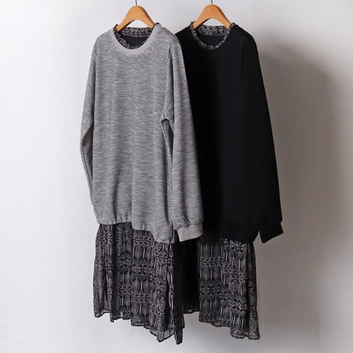 [에이치플러스몰]레이스 쉬폰 데일리 플레어 시스루 클래식 레이어드