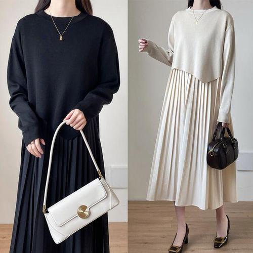 [셀러허브_여성트랜드패션]ONM 니트 원피스 롱원피스 봄 봄 여성 쉬폰 레이어드