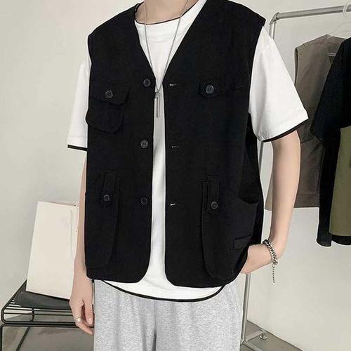 [에이치플러스몰]남자 아메카지룩 자켓 멀티 포켓 레이어드 코디 조끼