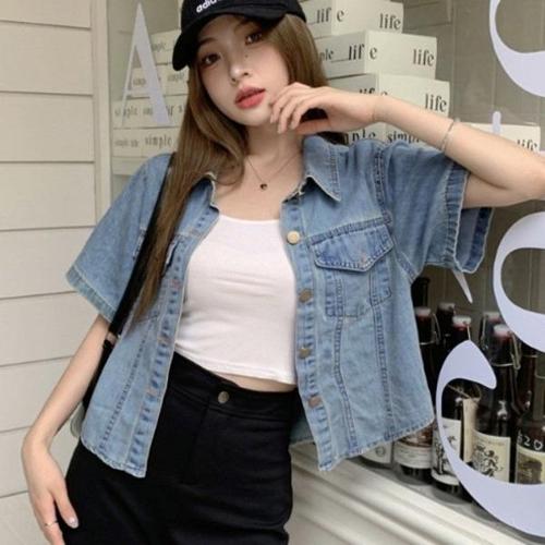 [엄지척]여름 여성 레이어드 세미크롭 데님 반팔 남방 청 자켓_20341585_667501