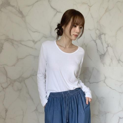 여성 봄 여름 무지 레이어드 U넥 스판 루즈핏 반팔 티 흰티 검정티