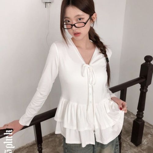 더핑크 / 아룽 루즈핏 레이어드 리본 스트랩 캉캉 프릴 긴팔티