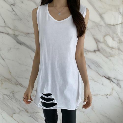 |KHTA03F|여성 루즈핏 긴 브이넥 레이어드 민소매 탑