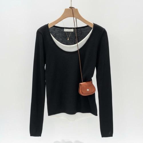 |CCTA119|여성 봄가을 오버핏 레이어드 긴팔 티셔츠