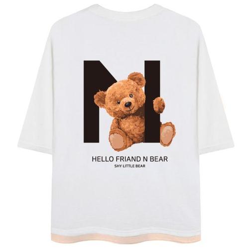 [네스파][당일발송/BEST 추천] 헬로엔베어 레이어드 오버핏 트임 7부티 SRV_0114 (4Color)
