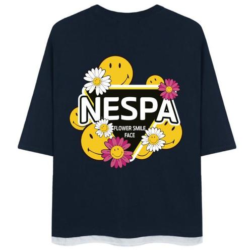 [네스파][당일출고/기획제품] 스마일플라워 레이어드 오버핏 트임 7부티 SRV_0139 (4Color)