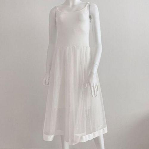 더블레이어 민소매 망사원피스 화이트