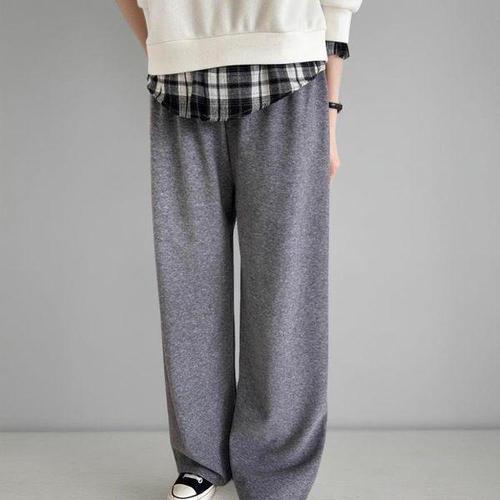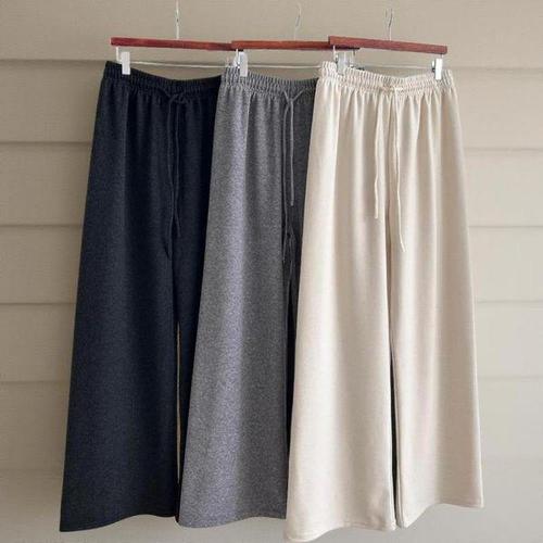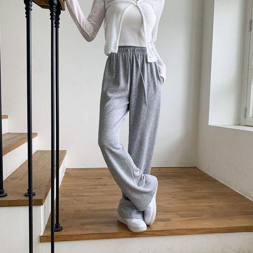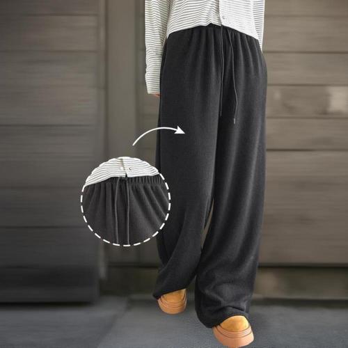 [신상오픈런]여성용 레이온 스판 잔골지 니트 팬츠 밴딩 스타일 캐주얼 바지