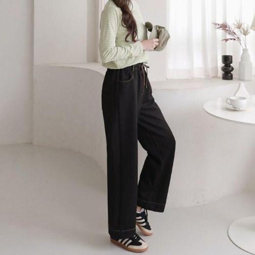 [신상오픈런]여성 레이온 신축성 스티치 허리끈 밴딩 청바지
