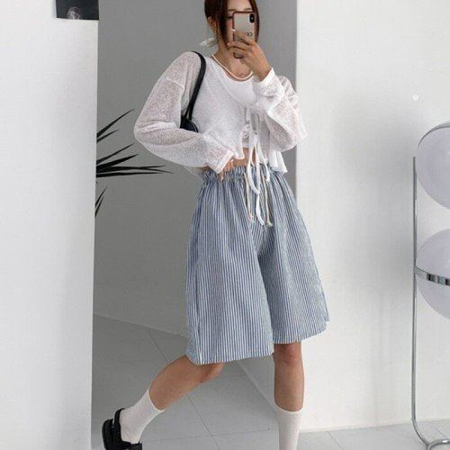 [신상오픈런]여성 레이온 스판 스트라이프 핀턱 밴딩 와이드 바지