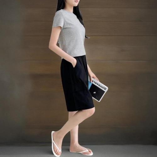 [신상오픈런]여성 캐주얼 인견 레이온 포켓 5부 밴딩 바지