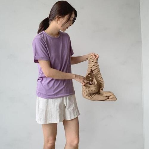 [다잇템][다잇템] 여자 소프트핏 U넥 소매롤업 민무늬 레이온 반팔티_21872216_588872