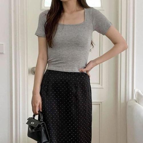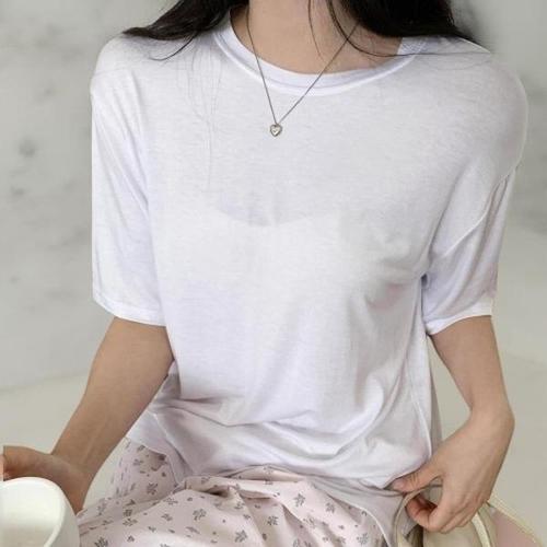 [다잇템][다잇템] 여성 스퀘어넥 미니멀리즘 레이온 비침 신축성 반팔티_21946283_588872